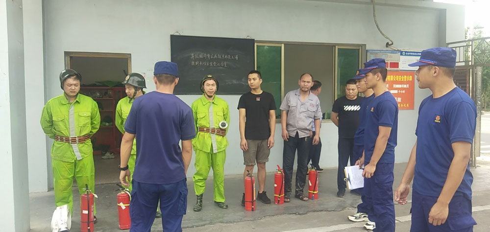 “着火了,着火了。”企业内,随着专职消防队员现场模拟报警,消防应急拉练正式开始。由企业应急消防人员完成灭火,专职消防队员在一旁观察,按照应急处置时间、应急人员、器材装备、应急能力四个方面对其灭火行为进行评分。同时,专职消防队员结合近期火警案例,就日常消防安全管理和火灾初期如何快速有效灭火,对企业应急消防人员进行现场业务指导。